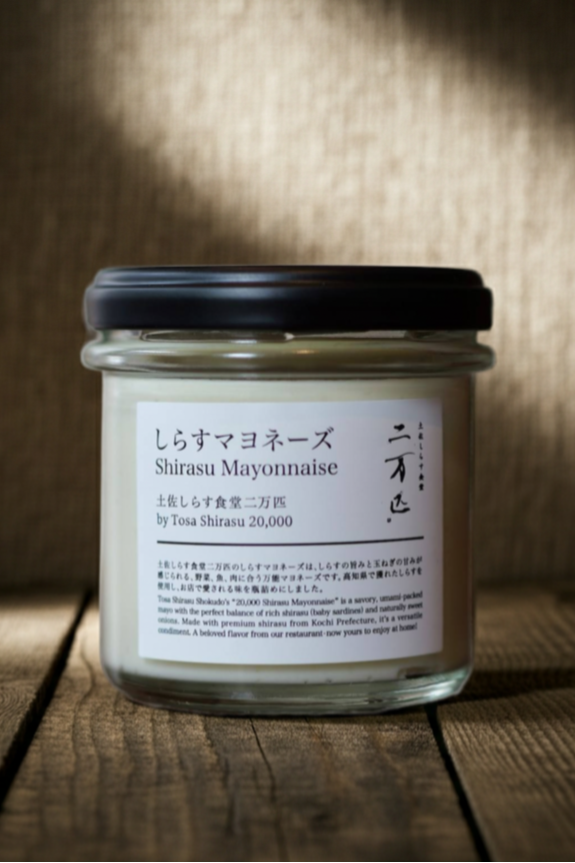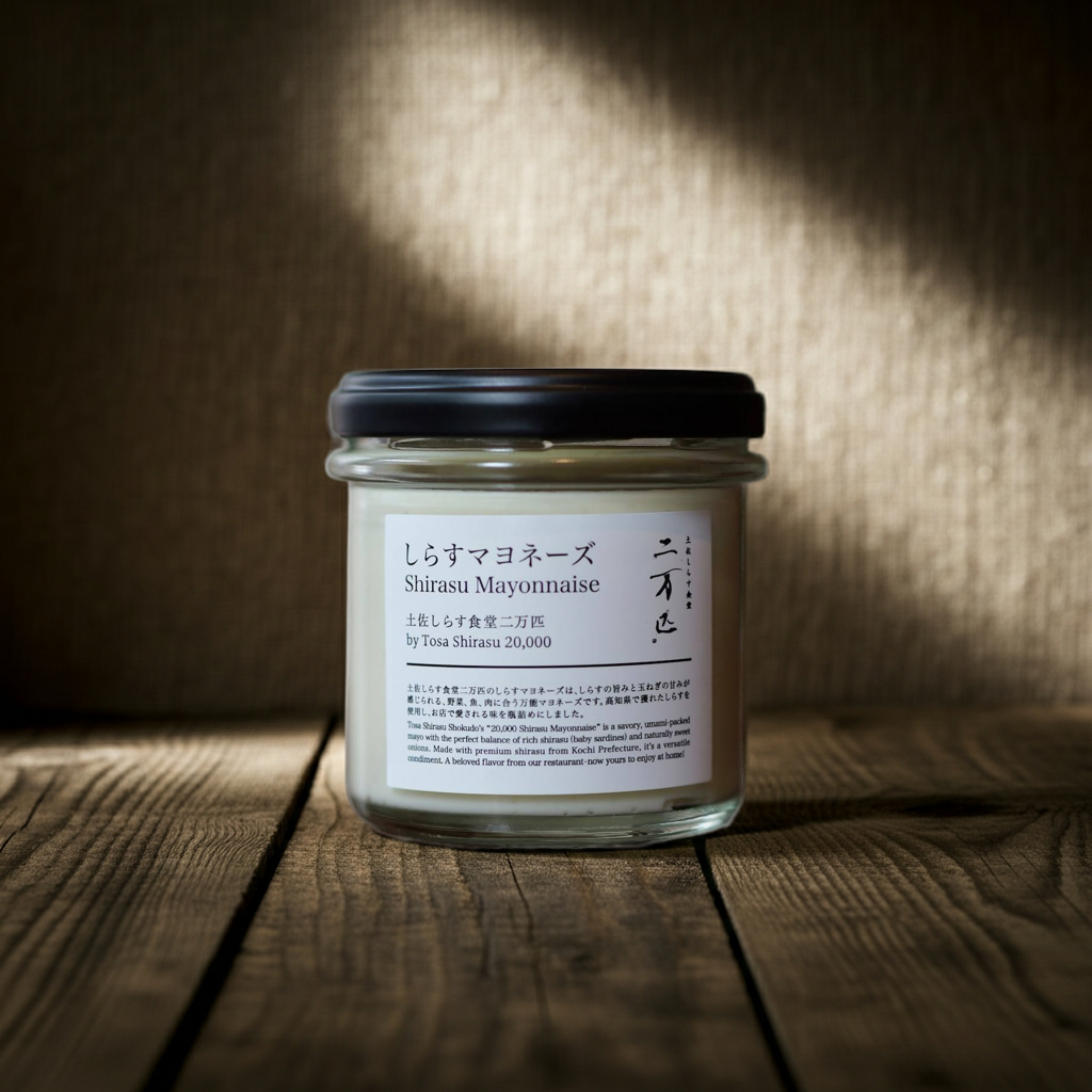 Tosa Shirasu Shokudo’s “20,000 Shirasu Mayonnaise” is a savory, umami-packed mayo with the perfect balance of rich shirasu (baby sardines) and naturally sweet onions. Made with premium shirasu from Kochi Prefecture, it’s a versatile condiment. A beloved flavor from our restaurant—now yours to enjoy at home!