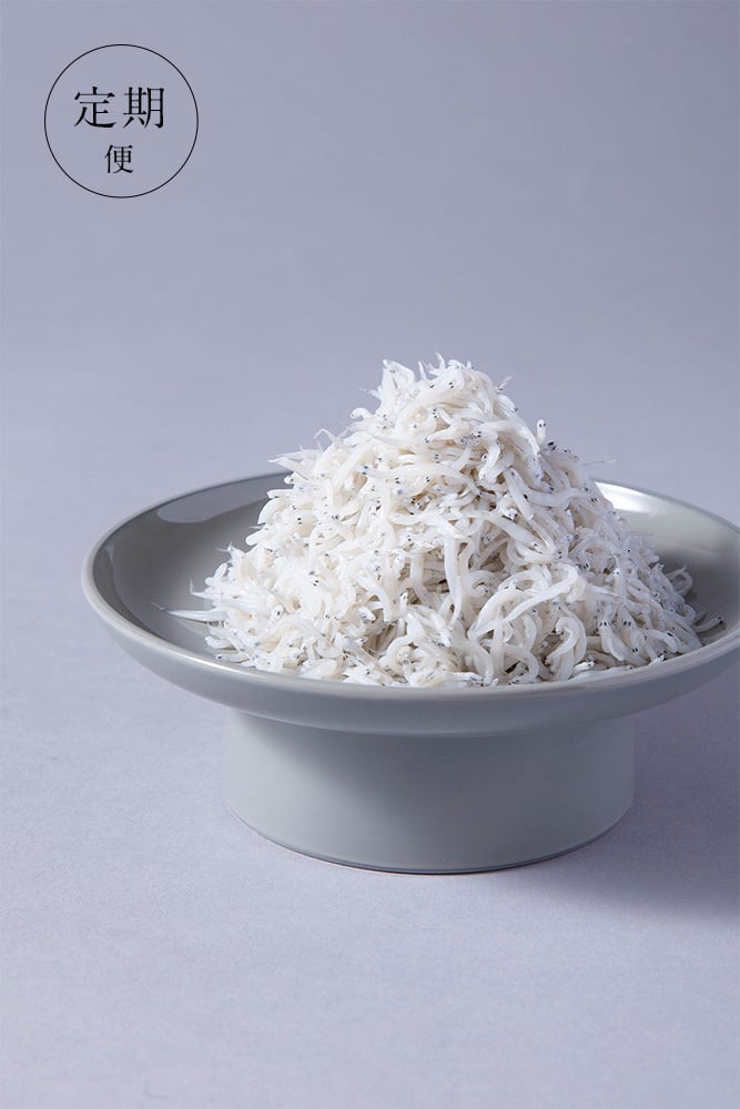 土佐しらす食堂二万匹の釜揚げしらすが急速冷凍されて、2か月に一回5パック(1パック70g)づつ届きます。