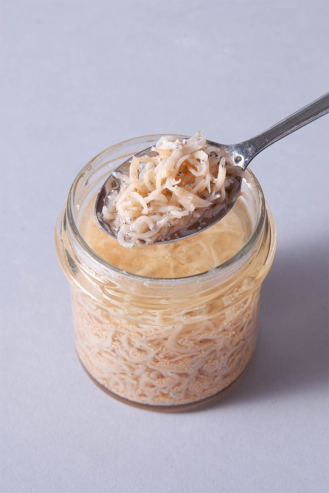 一番シンプルに潔く、オリーブオイル漬けのしらすです。