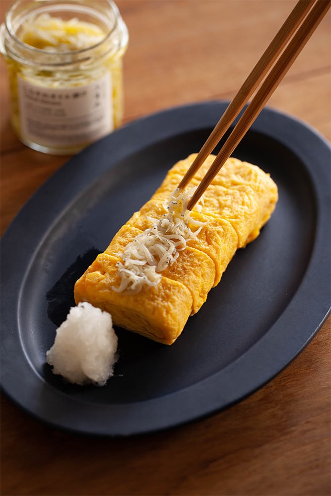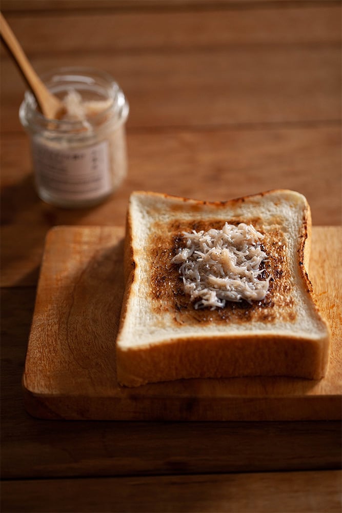 一番シンプルなプレーンは、とことん潔くオリーブオイルとしらすだけ。うちのしらすを知っていただくにはまずはそのまま食べてください。そのまま味わったあとには、お好みでパンやパスタに合わせたり、ご飯との相性も間違いなし。卵焼きにかけて食べるのも◎です!